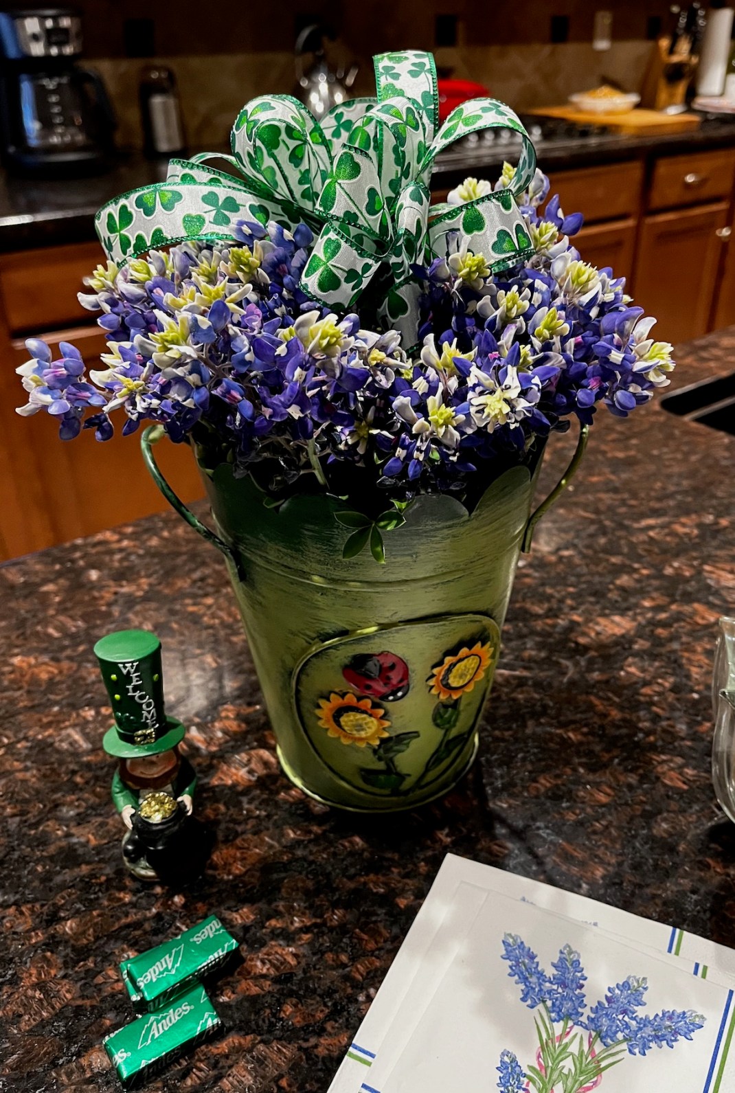 As I have written here before, when I was a kid, my Mother and I would go down to Colletta Creek, out on the country roads south of Victoria, and we would pick bluebonnets and Indian pinks and Indian paintbrush by the buckets-full. There were sooo many. The biggest worry was not replenishing the beds, but the snakes that could be lurking underneath. This was always the week or so before Easter, and then we would come home and make huge wildflower arrangements for the house. I would use the leftovers to “feather” my Easter nest in front of the fireplace and the flowers would last, somehow, for days!